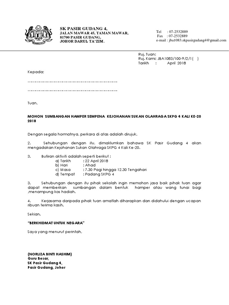Mpvlandskap nurseri smk selandar ingin memohon sumbangan dari pibg bagi Bersandarkan kejohanan tersebut saya bagi pihak sekolah ingin memohon sumbangan dari pibg bagi menampung perbelanjaan untuk menjayakan. The collection that consisting of. Beberapa Contoh Surat Mohon Sumbangan Koperasi Sekolah Terlengkap 2019.
