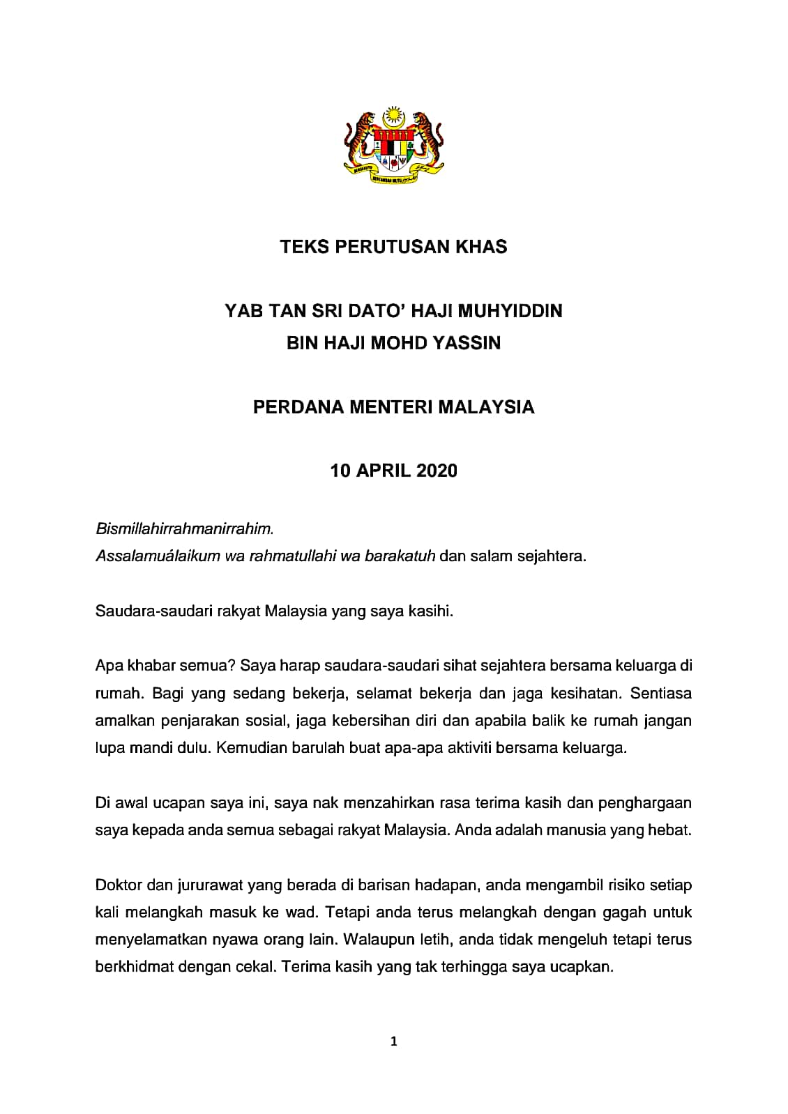 Jabatan Perdana Menteri On Twitter Teks Ucapan Khas Yab Tan Sri Dato Haji Muhyiddin Bin Haji Mohd Yassin Perdana Menteri Malaysia Jabatanperdanamenteri Jpm Covid19 Perintahkawalanpergerakan Malaysiabebascovid19 Dudukrumah Socialdistance